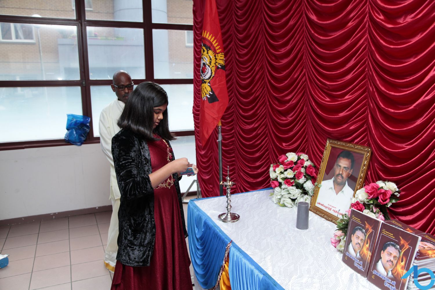 திருஉருவப்படத்திற்கான மலர்மாலையை உடகவியலாளர் நாட்டுப்பற்றாளர் புண்ணியமூர்த்தி சத்தியமூர்த்தி அவர்களின் துணைவியார் திருமதி நந்தினி சத்தியமூர்த்தி அவர்கள் அணிவித்தனர்.